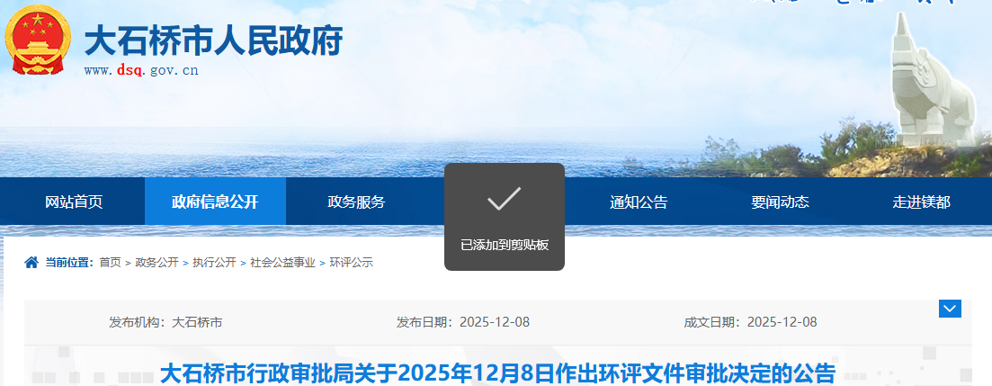 根據(jù)建設(shè)項(xiàng)目環(huán)境影響評(píng)價(jià)審批程序的有關(guān)規(guī)定,經(jīng)審查,我局對(duì)1個(gè)項(xiàng)目環(huán)境影響評(píng)價(jià)文件作出審批決定?,F(xiàn)將作出的審批決定情況予以公告,公告期為2025年12月8日-2025年12月12日(5個(gè)工作日)。