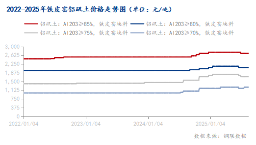 圖1 2022-2025年鐵皮窯鋁礬土價(jià)格走勢(shì)圖