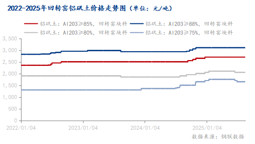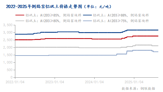 圖3 2022-2025年倒焰窯鋁礬土價(jià)格走勢(shì)圖