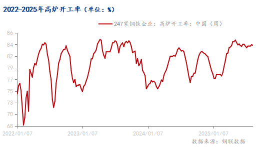 圖5 2022-2025年高爐開(kāi)工率走勢(shì)圖