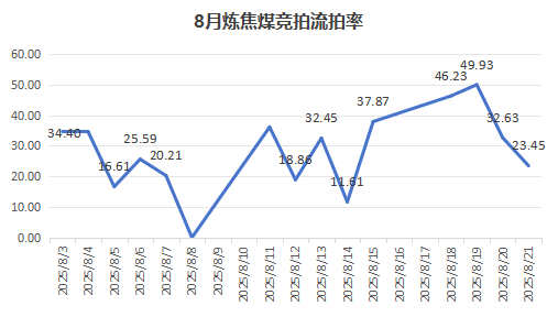 八月中旬起,煉焦煤市場開始出現(xiàn)明顯轉(zhuǎn)弱態(tài)勢。線上競拍波動明顯,參與競拍的煉焦煤礦掛牌場次眾多,總計掛牌量數(shù)量可觀,但市場情緒低迷,流拍率較前期大幅增加。